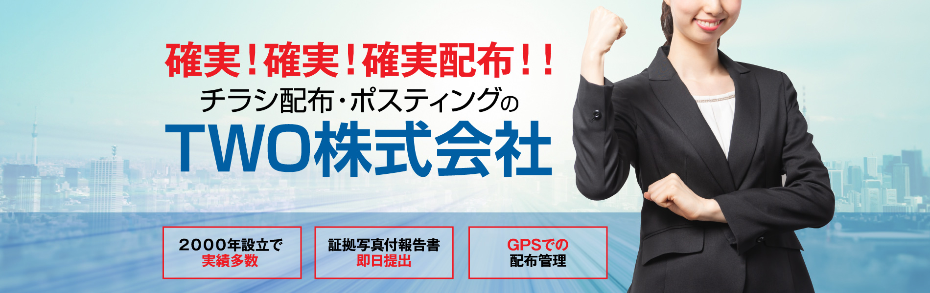 ポスティングの場合、配布スタッフの人選がとても重要です。当社(ティー・ダヴリュ・オー株式会社)では、各地域の地理に詳しい地域密着の地元スタッフを配置し、GPSでの正確な地理を把握しながらの徹底した管理により、配布を行っていおります。また、クライアント様には、証拠写真付き報告書を即日提出、間違いのない業務を行います。